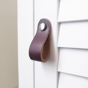 Leather Drawer Pulls – Matte Burgundy & Tan