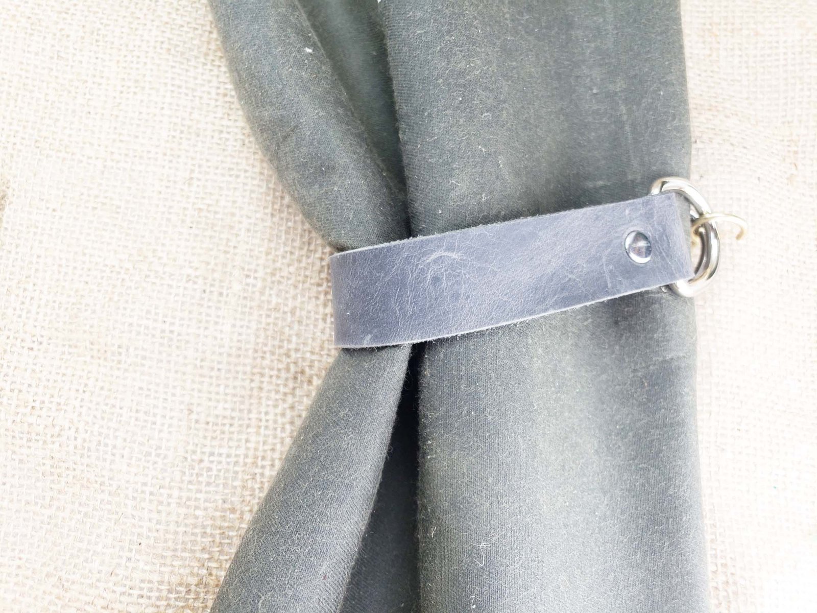 - each curtain tie comes with two D rings in your choice of hardware, one on either side fastened with rivets of matching color.