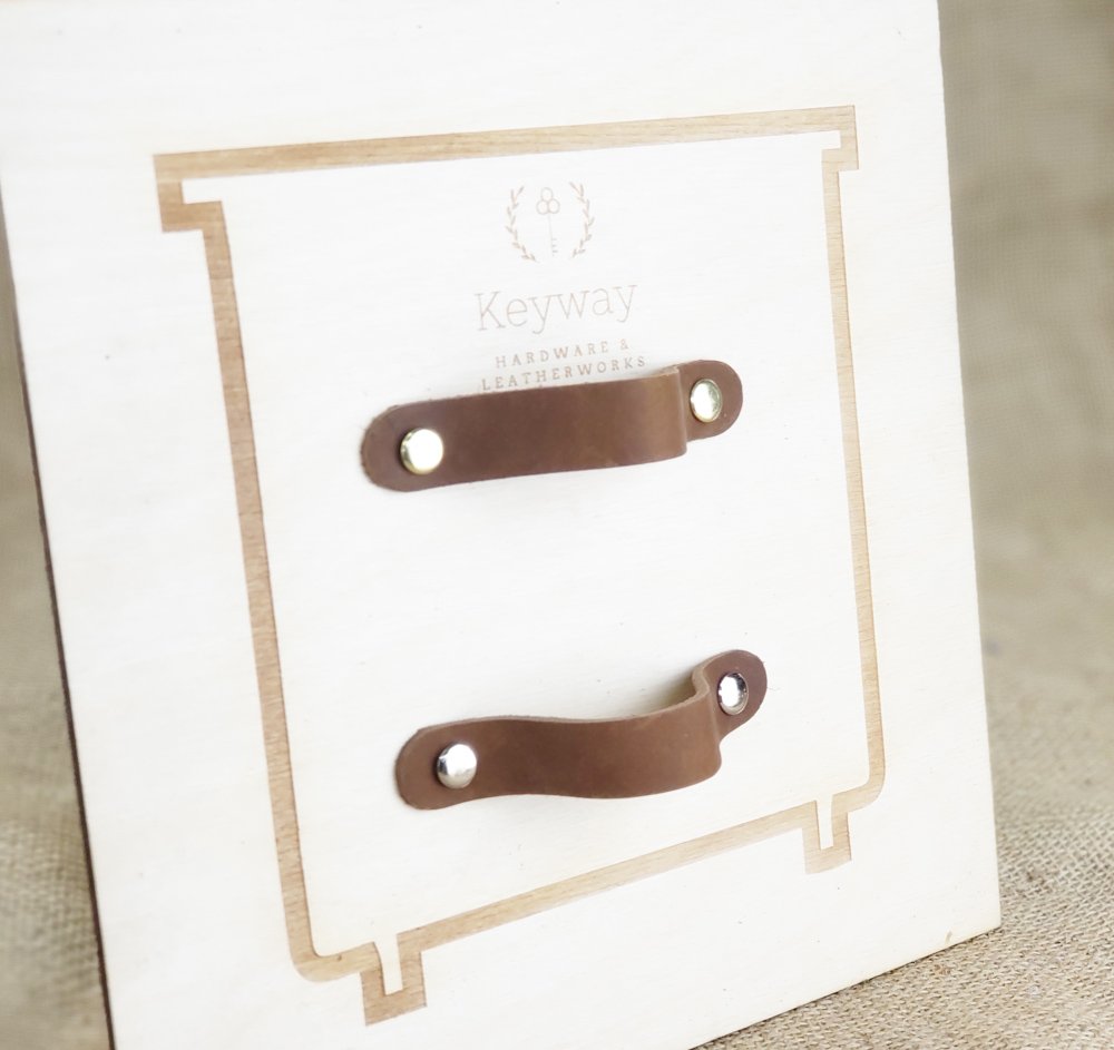 Refresh your furniture and cabinetry with custom made leather drawer pulls.