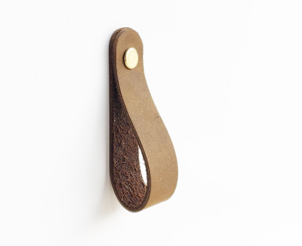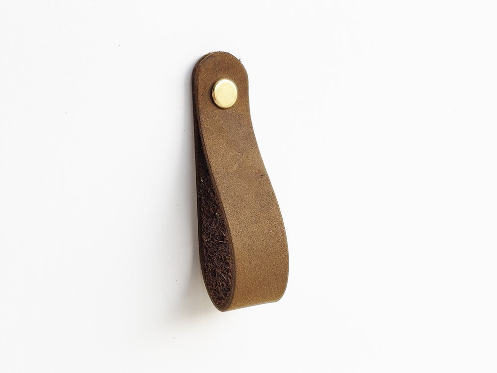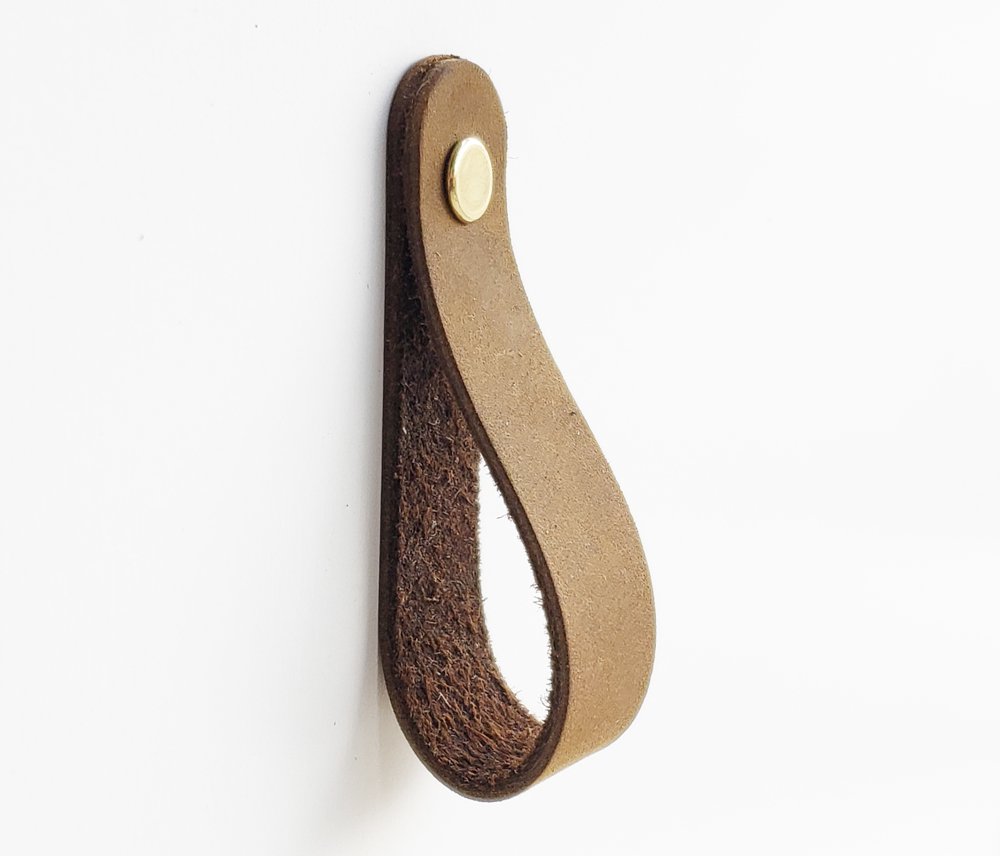 - Our most versatile piece of hardware, a classic loop-style all-leather pull perfect for reaching up to cabinets and drawers.