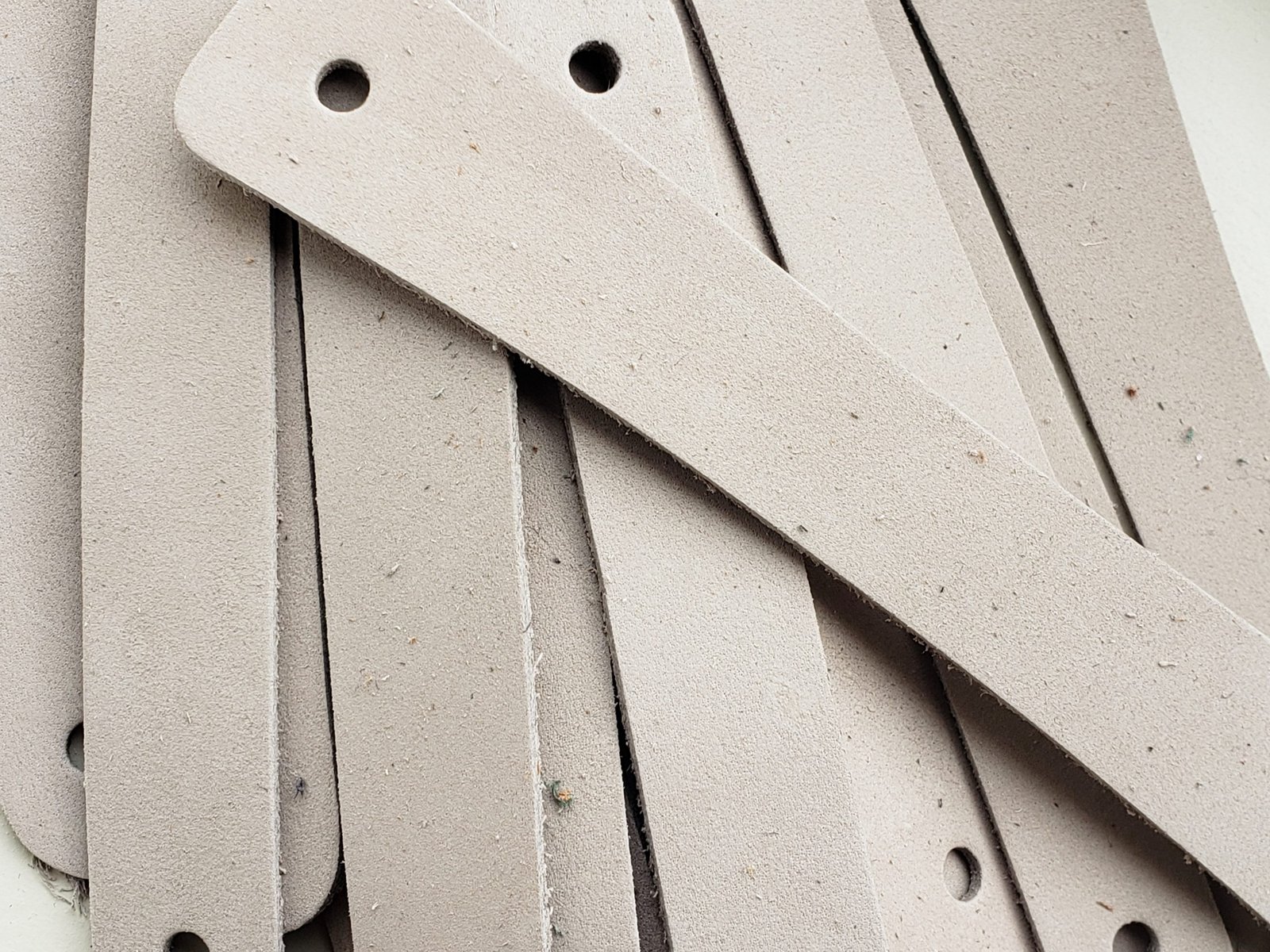 Leather Drawer Pulls – Buckskin – Concave Squared Edges