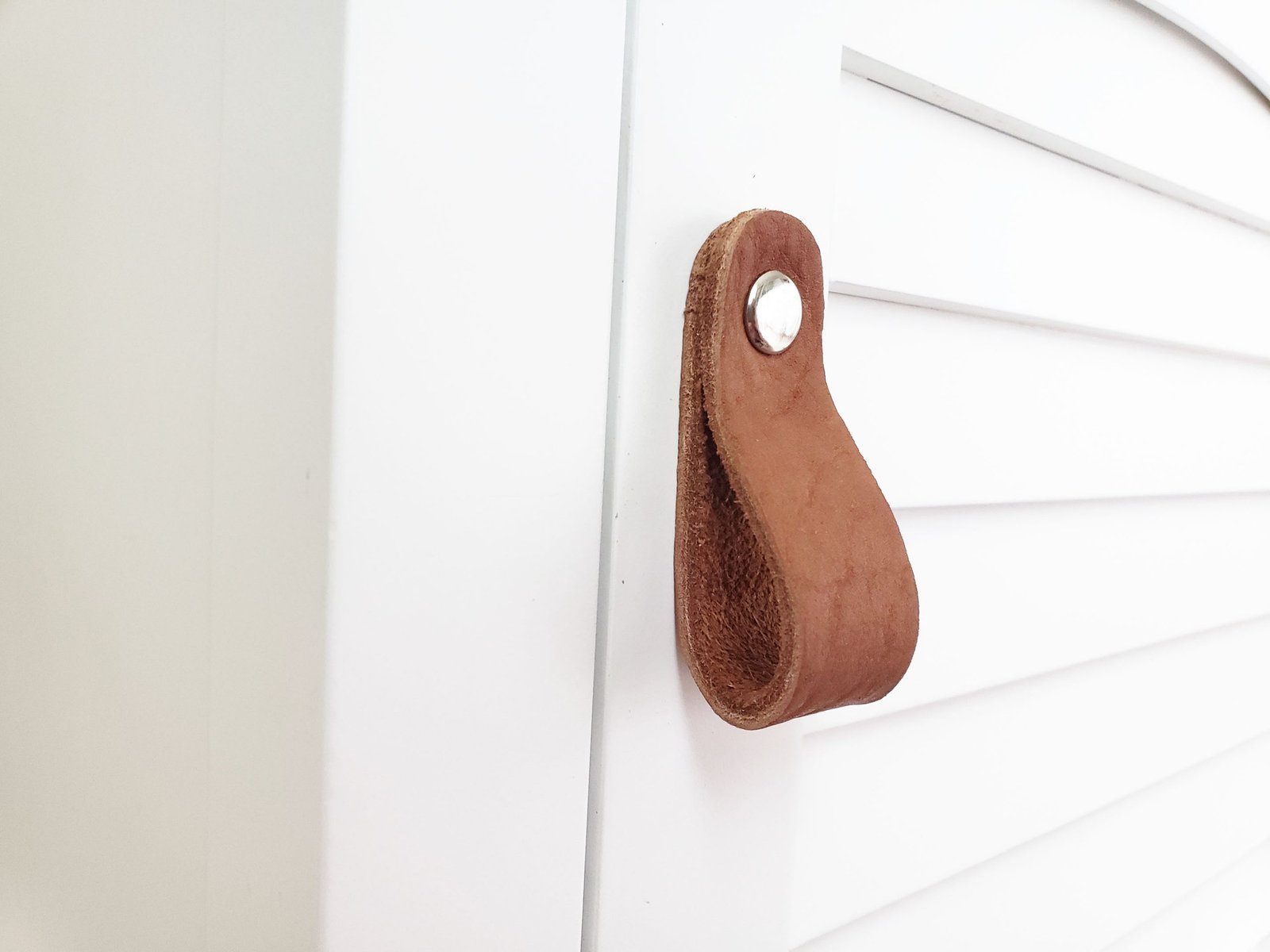 - Handcrafted in our small boutique studio using full grain leather, our leather drawer pulls and cabinet pulls make fine accents to any kitchen, home, or dresser drawers – even IKEA hacks!