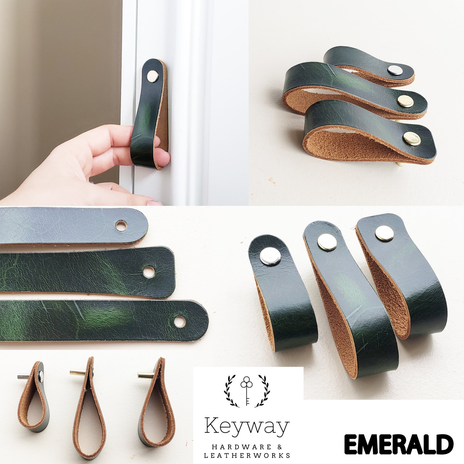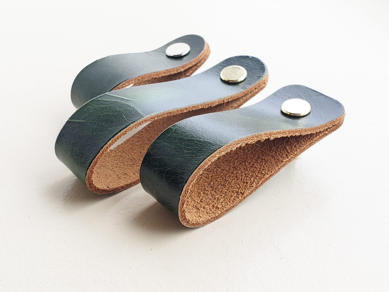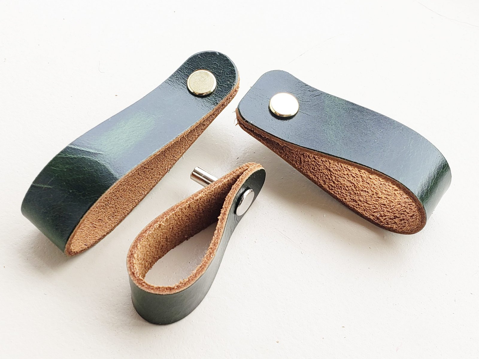 Leather Drawer Pulls – Emerald – Concave Squared Edges