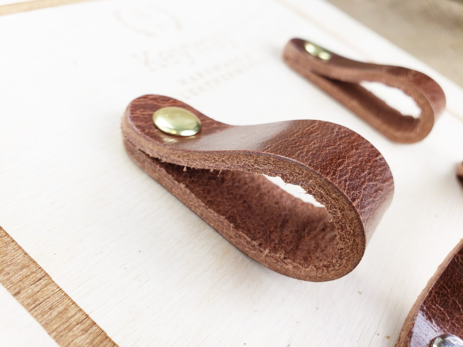 - Handcrafted in our small boutique studio using full grain leather, our leather drawer pulls and cabinet pulls make fine accents to any kitchen, home, or dresser drawers – even IKEA hacks!